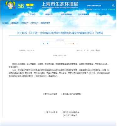 上海市生態(tài)環(huán)境局近日聯(lián)合上海市綠化和市容管理局、上海市水務(wù)局和上海市農(nóng)業(yè)農(nóng)村委員會印發(fā)《關(guān)于進一步加強環(huán)保用微生物菌劑環(huán)境安全管理的意見》該意見自2022年12月1日起施行。文件要求夯實微生物菌劑提供和應(yīng)用單位的主體責(zé)任、規(guī)范微生物菌劑環(huán)境安全評價單位的服務(wù)標(biāo)準(zhǔn)、強化微生物菌劑環(huán)境安全事中、事后監(jiān)管和指導(dǎo)服務(wù)及推動行業(yè)協(xié)會進一步發(fā)揮自律自治作用。(上海市生態(tài)環(huán)境局)