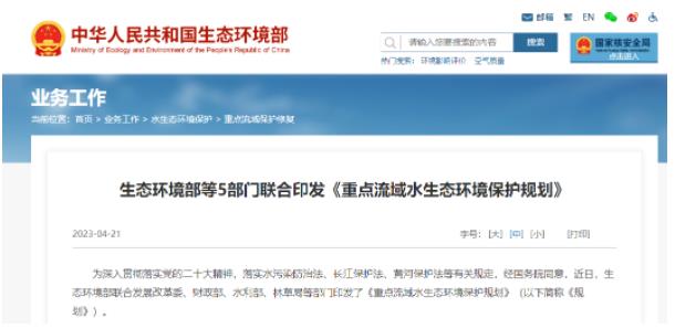2023.4.21《重點流域水生態(tài)環(huán)境保護規(guī)劃》發(fā)布