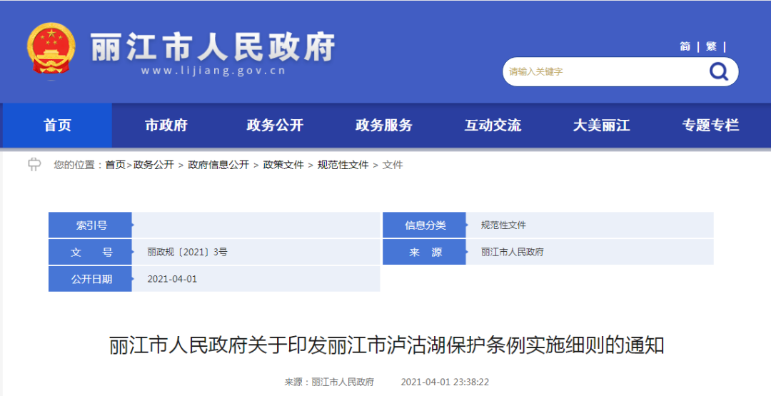 4肆-麗政規(guī)(2021)3號關于印發(fā)麗江市瀘沽湖保護條例實施細則的通知RDQ新型光催化網(wǎng)_水庫治理_河道治理_水生態(tài)修復_水環(huán)境治理與修復_江蘇雙良環(huán)境科技有限公司