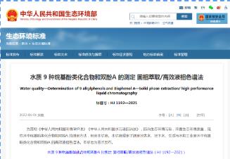 為規(guī)范水中烷基酚類(lèi)化合物和雙酚A 的測(cè)定方法,生態(tài)環(huán)境部制定本標(biāo)準(zhǔn)。本標(biāo)準(zhǔn)規(guī)定了測(cè)定地表水、地下水、生活污水和工業(yè)廢水中烷基酚類(lèi)化合物和雙酚A 的高效液相色譜法。本標(biāo)準(zhǔn)為首次發(fā)布。