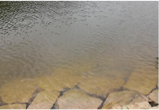 ?水庫(kù)水質(zhì)持續(xù)改善,而外圍區(qū)域水質(zhì)相對(duì)渾濁;淺水區(qū)域出現(xiàn)大量的螺類,生態(tài)系統(tǒng)得到初步恢復(fù)。CDZ新型光催化網(wǎng)_水庫(kù)治理_河道治理_水生態(tài)修復(fù)_水環(huán)境治理與修復(fù)_江蘇雙良環(huán)境科技有限公司