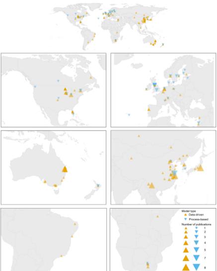 PB或DD的使用是隨著時(shí)間的推移而改變的。在2013年之后,DD模型的比例有所增加(圖2)。在澳大利亞、美國和日本,DD預(yù)報(bào)模型應(yīng)用的比例很高,而PB方法在英國和北歐國家更常見(圖3)。