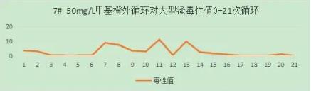 由于5#和7#儀器同時表明,50mg/L甲基橙溶液對大型溞無明顯影響,光催化網(wǎng)對比實驗不明顯,終止50mg/L甲基橙光催化試驗。FNZ新型光催化網(wǎng)_水庫治理_河道治理_水生態(tài)修復(fù)_水環(huán)境治理與修復(fù)_江蘇雙良環(huán)境科技有限公司