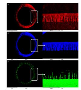 圖2 浸漬TiO2((a)、氧(b)、鋁(c)的不對(duì)稱氧化鋁中空纖維載體的EDS圖像r1K新型光催化網(wǎng)_水庫(kù)治理_河道治理_水生態(tài)修復(fù)_水環(huán)境治理與修復(fù)_江蘇雙良環(huán)境科技有限公司