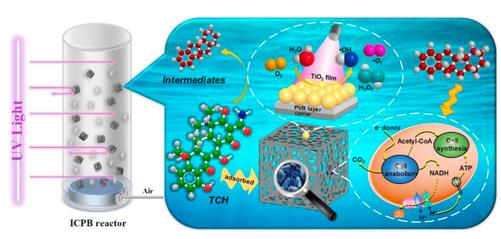 QqA新型光催化網(wǎng)_水庫治理_河道治理_水生態(tài)修復(fù)_水環(huán)境治理與修復(fù)_江蘇雙良環(huán)境科技有限公司圖3 ICPB反應(yīng)器和相關(guān)機(jī)制的示意圖
