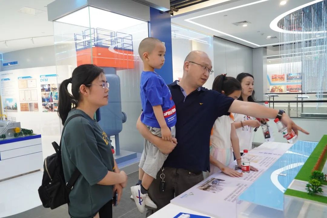 在輕松活潑的氛圍中,第一站我們來(lái)到了雙良集團(tuán)展館參觀,通過(guò)接待人員生動(dòng)活潑的講解介紹,讓孩子們了解了爸爸媽媽每天上班的地方,了解爸爸媽媽是做什么的。XUy新型光催化網(wǎng)_水庫(kù)治理_河道治理_水生態(tài)修復(fù)_水環(huán)境治理與修復(fù)_江蘇雙良環(huán)境科技有限公司